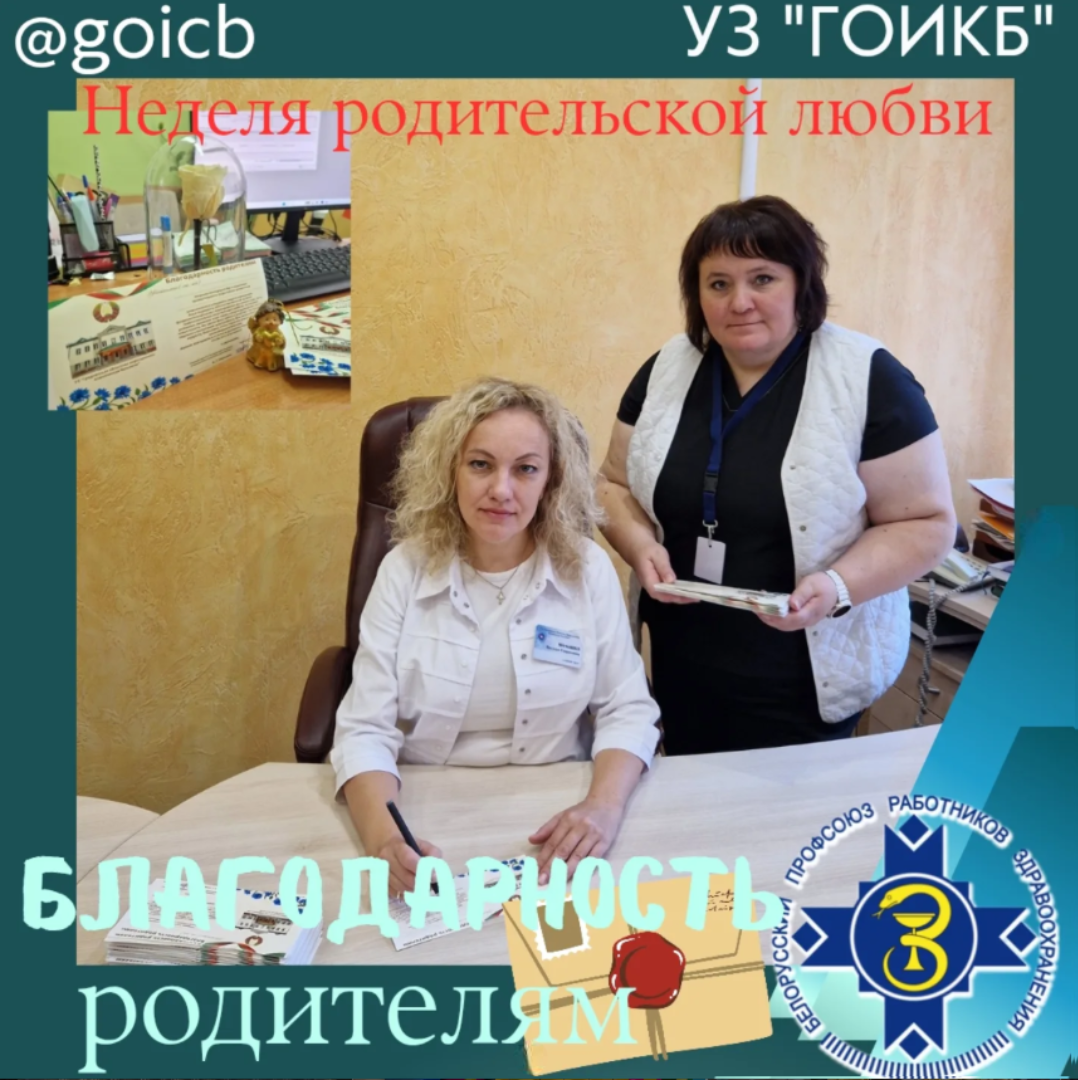 💌Вканун празднования Недели родительской любви все родители наших сотрудников, в том числе и студентов Гродненского медицинского университета получили праздничные благодарственные письма от Главного врача нашей больницы Натальи Малышко и председателя профсоюзного комитета Елены Ключник.