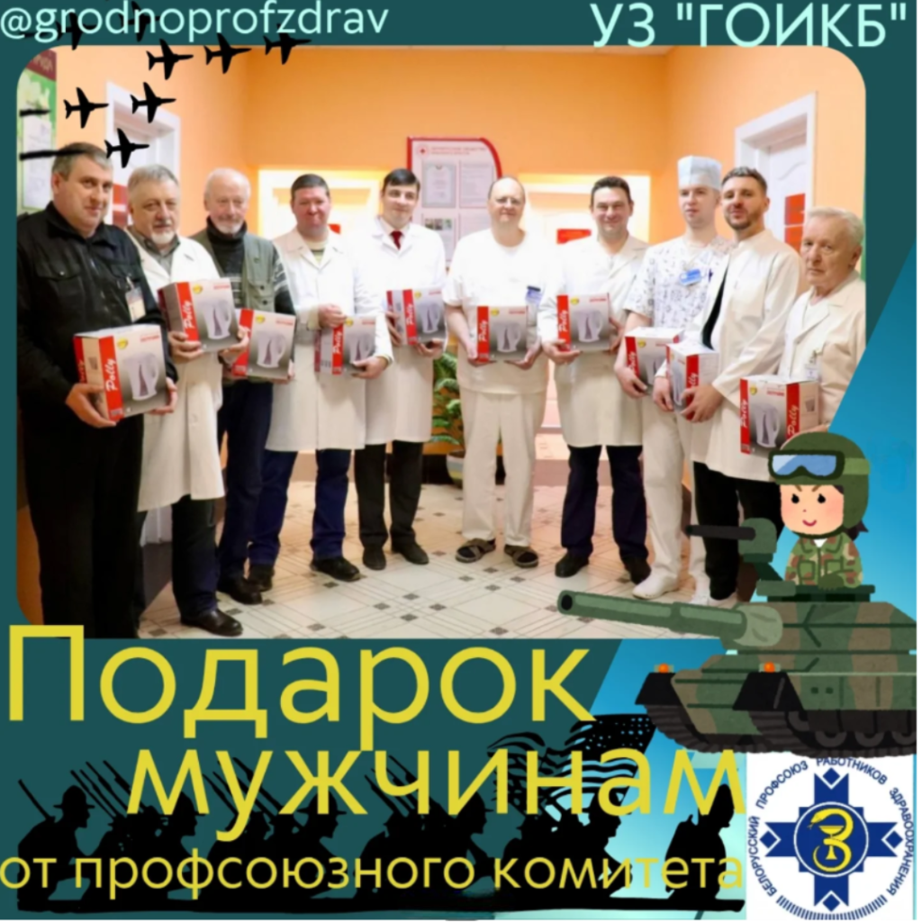 🎁🎁🎁 Профсоюзный комитет УЗ «ГОИКБ» поздравил сотрудников мужчин, подарив им электрические чайники.